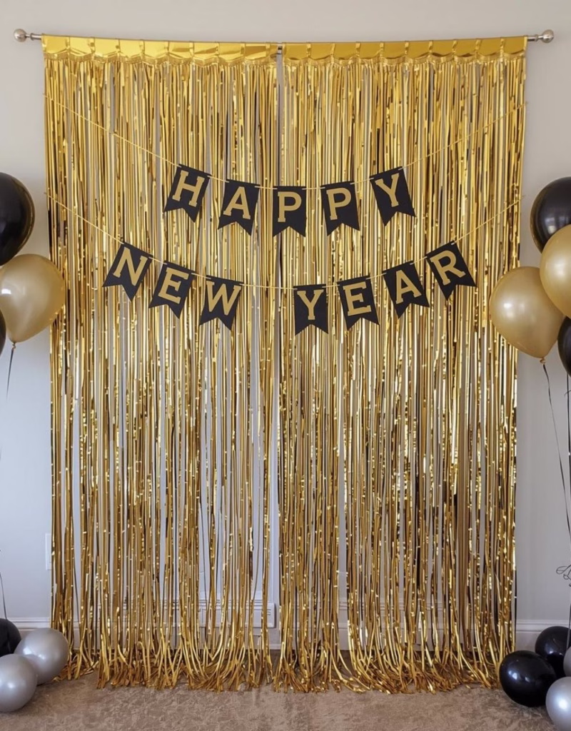 Instead of worrying about decorating your whole downstairs, decide on one focal point. A New Year’s Eve photo scene where people can take pictures.