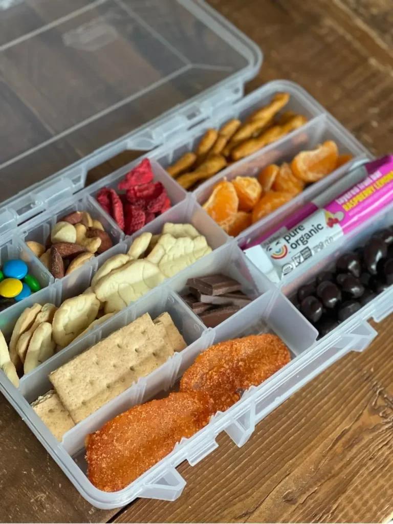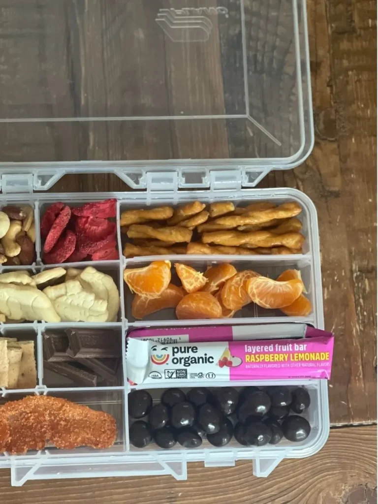 The snackle box is a fun combination of a tackle box (yes, like for fishing) and a snack tray. And here’s why busy moms like us should care: it’s portable, compartmentalized, and can be prepped in 5 minutes flat with whatever you already have in your pantry.
